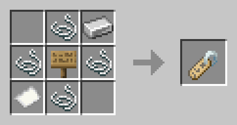 Name Tag se lahko izdela po spodnjem receptu in se med drugim v glavnem uporablja za označevanje živali, pošasti in drugih entitet. Če je žival označena, je strežnik ob čiščenju ne bo pobrisal - v nasprotnem primeru pa se lahko žival, pošast ali druga neimenovana entiteta izbriše.